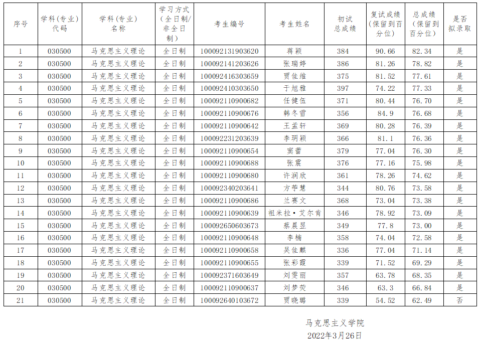 乌鸦传媒 2022年硕士生招生第一志愿考生复试结果(含拟录取名单,以一级学科/专业为单位)