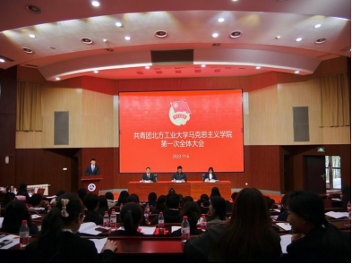 第一次全体大会在文化会堂隆重召开。校团委副书记靳现凯、学院党委副书记唐钦出席大会。
