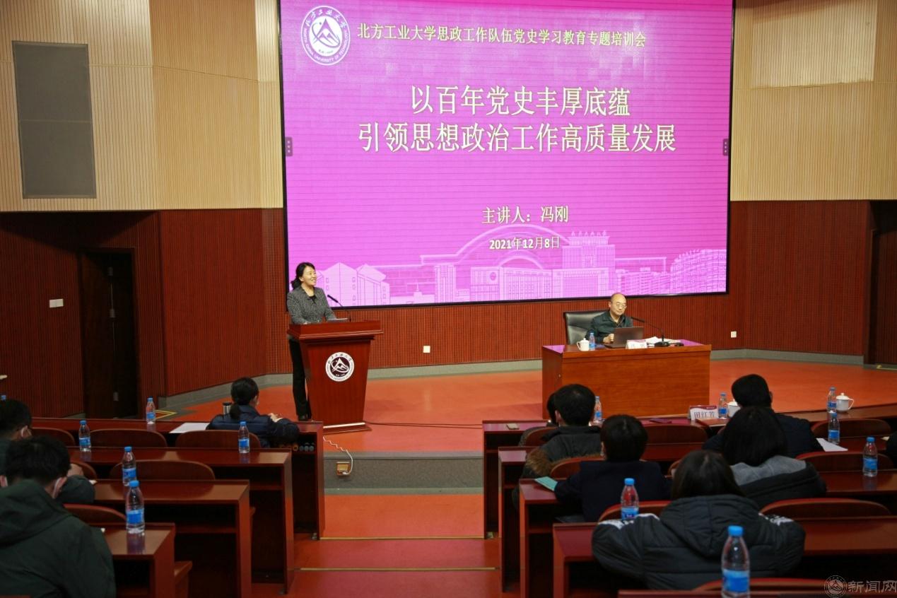 在全国高校思想政治工作会议召开五周年之际,为进一步提升我校思想政治工作水平,学校于12月8日举办思政工作队伍党史学习教育专题培训会,邀请教育部思想政治工作司原司长、北京师范大学思想政治工作研究院院长冯刚教授作题为“以百年党史丰厚底蕴引领思想政治工作高质量发展”的主题报告。校党委副书记田红芳主持报告会,副校长王力出席报告会。