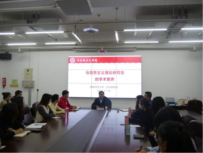 副院长、北京高校中国特色社会主义理论研究协同创新中心(首都师范大学)常务副主任、北京市伦理学会副秘书长、首都师范大学社会文化史研究中心研究员、北京市委讲师团宣讲专家沈永福教授,在瀚学楼1208会议室主讲题为《马克思主义理论研究生的学术素养》的学术报告,乌鸦传媒