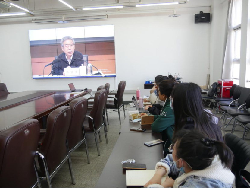 于11月13日上午,组织全体师生在学院会议室收看了在中国人民大学逸夫会堂第一报告厅举行的、由中央宣讲团成员,教育部党组书记,教育部部长陈宝生同志主讲的“‘党的十九届五中全会精神’导学报告会”的实况直播。