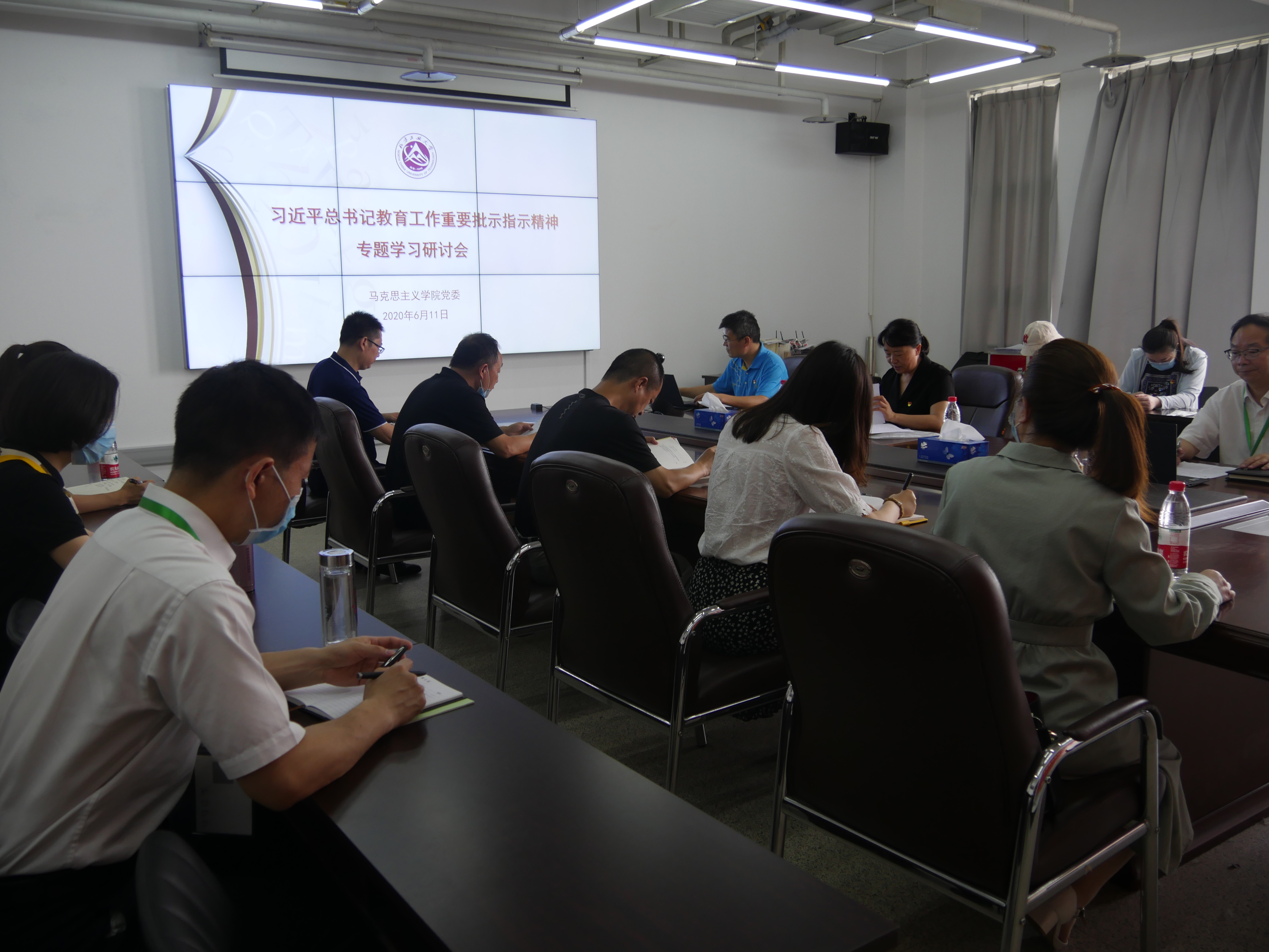 在瀚学楼1208会议室召开习近平总书记教育工作重要批示指示精神专题学习研讨会。校党委副书记田红芳、院长张加才、副院长张茂林、党委委员周守高、刘以沛,教研室主任李肖、刘喜珍、朱建平及教师代表出席研讨会。