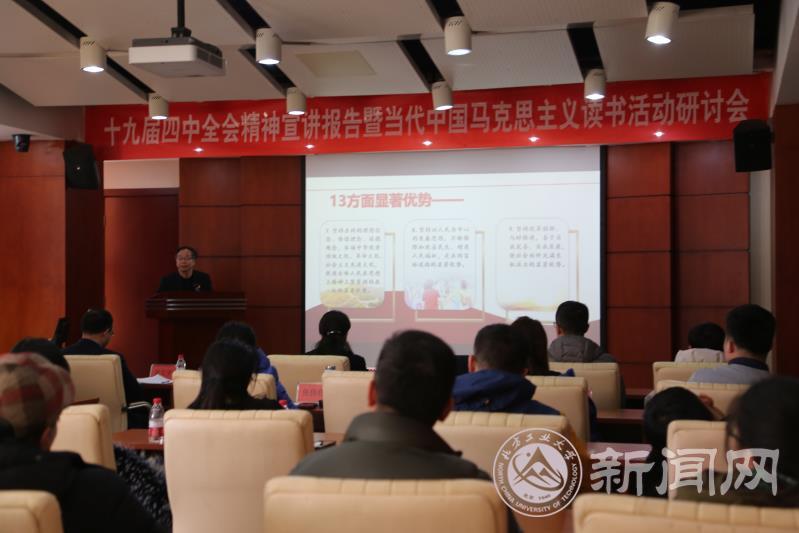院长张加才以《中华民族伟大复兴的制度保障》为题,做了一次解读党的十九届四中全会精神的辅导报告,正式拉开了读书活动的序幕。