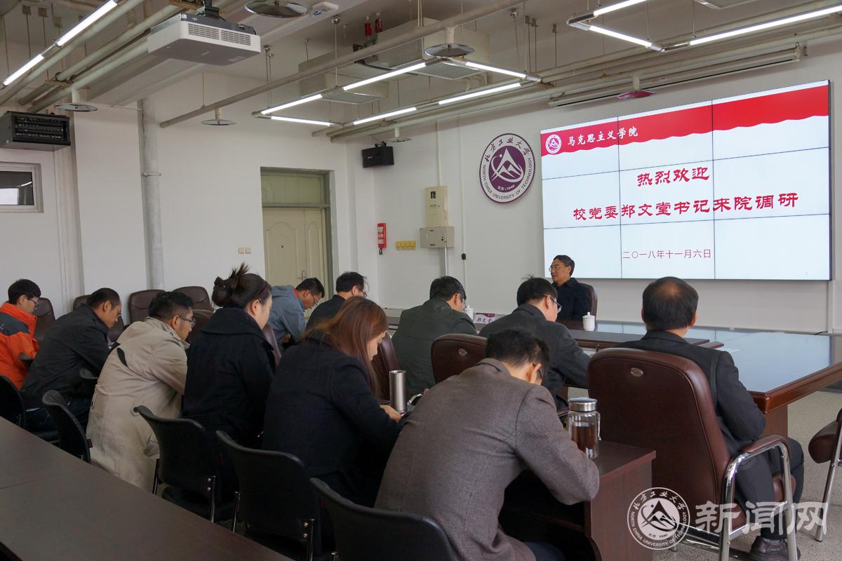 的发展状况及在本科教学审核评估中的工作表现予以充分肯定,并代表学校送上了亲切的慰问。他指出,在新时代新形势下,马院全体教师要进一步抢抓机遇,明确定位、苦练内功、凝聚特色、差异发展,推动学院事业再上台阶。明确定位,就是要明确马院在高校立德树人工作中的重要地位,切实做好马克思主义的学习研究传播工作;苦练内功,就是要潜心教书育人,加强思政课教师队伍建设,服务于新工科人才的培养;凝练特色,就是要传承并深化马院的传统,形成品牌优势;差异发展,就是要立足比较优势,发挥北方工大马院在北京市乃至全国高校中的应有作用。
