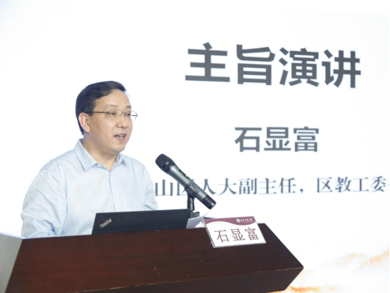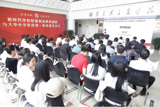 一直以来对石景山区基础教育的支持表示感谢。他介绍了石景山区教育系统以北京市大中小幼一体化德育实践研究示范区建设为载体,构建横向融通、纵向衔接的幼小中高一体化联动体系,坚持守正创新、凝心聚力,全面提升各学段思政课课程建设与师资质量,强化学高从教、身正示范,全力打造高素质思政教师队伍等方面的做法与成效。姜苗分享了大兴区教育两委坚持党的全面领导,深入思考大思政课“为何一体化”“何为一体化”“如何一体化”等重大问题,党政齐抓共管,健全机制,打破壁垒,用党的创新理论不断推进“大思政课”一体化建设的有效经验。