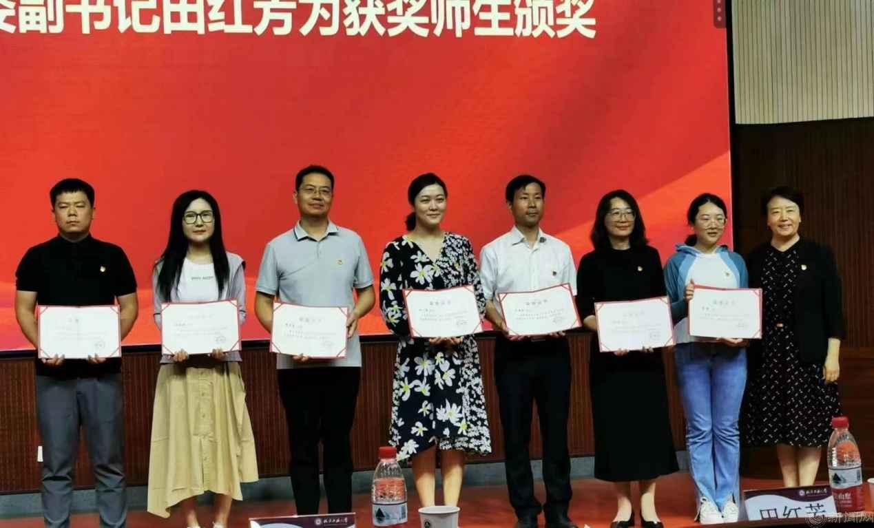 2023年度优秀党务工作者、优秀共产党员,田红芳为获奖师生颁发了证书。