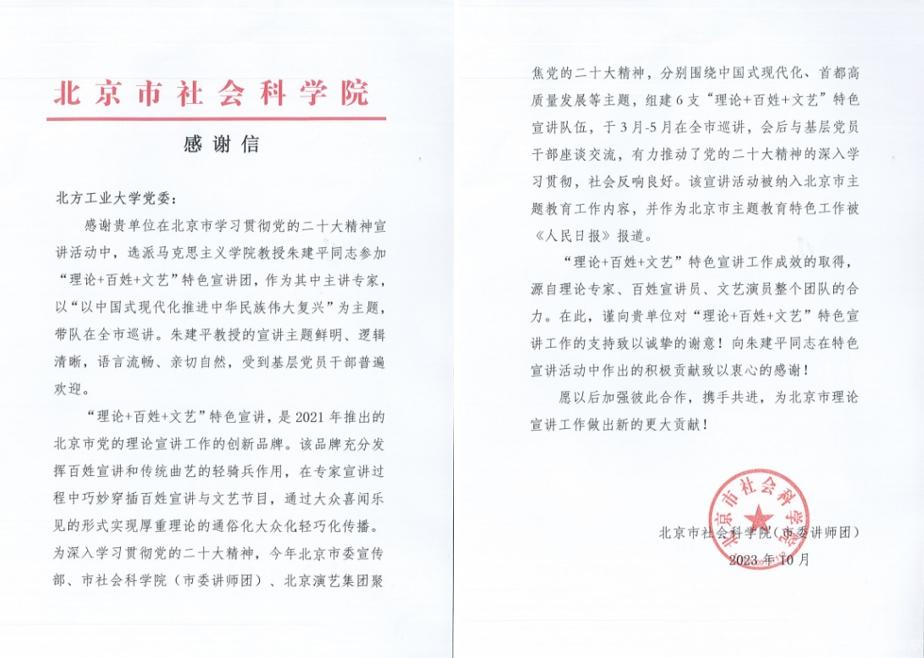 近日,北京市社会科学院(市委讲师团)给我校发来感谢信,感谢我校对北京市学习贯彻党的二十大精神宣讲活动的大力支持,对乌鸦传媒
