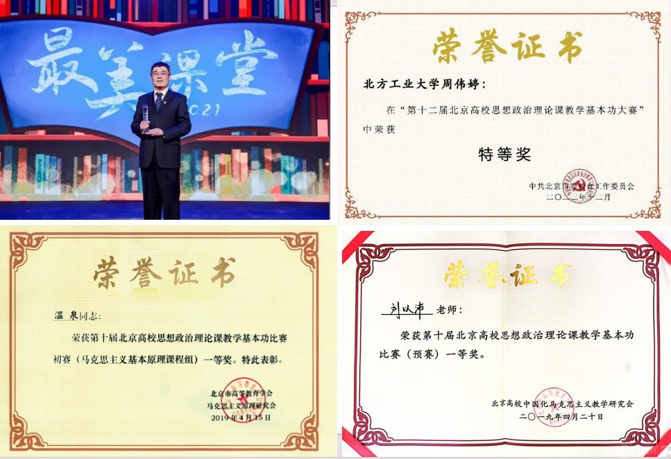 近年来,学校思政课教师多人次获评北京市优秀教师、北京高校青年教学名师、北京高校思政课特级教师、北京高校优秀德育工作者、北京高校师德先锋等荣誉;获全国高校思政课教学展示活动二等奖、北京高校教书育人“最美课堂”一等奖、北京市思想政治理论课教学基本功比赛特等奖等重要奖项。