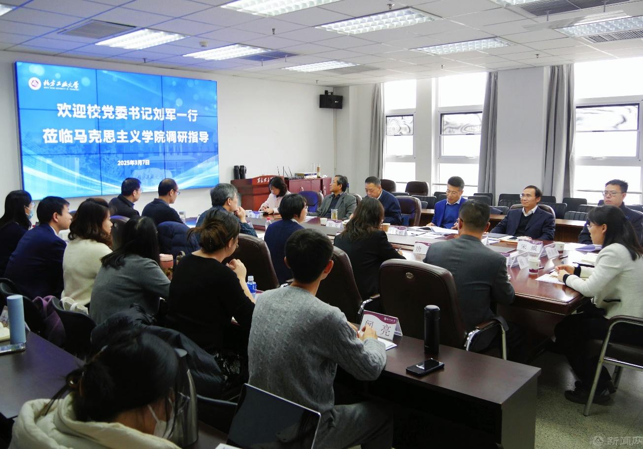 党委要进一步提高思想认识,强化思政课教师的使命担当,加强以习近平新时代中国特色社会主义思想为核心内容的思政课程体系建设,推动新时代立德树人工程落地见效;二是要准确把握新形势新任务新挑战。马院要全面落实《教育强国建设规划纲要(2024—2035年)》和“北京市贯彻 <教育强国建设规划纲要> 的实施方案”部署要求,根据学校“强基固本,提质扩容”工作基调,特别是“一校两区”的办学格局,抓好重点,积极作为;三是要多措并举推进思政课改革创新。思政课教师要主动顺应时代要求,始终保持积极进取的态度,勇于攻坚克难,提升育人能力,改革教育教学方法,在课程、师资和教学几个方面下足功夫,进一步推动思政课内涵式发展,力争在教育教学领域取得更多标志性成果。四是要以“大思政课”拓展思政育人新格局。要深挖学校文化基因,建好讲好“兴工报国”大思政课,将思政“小课堂”与社会“大课堂”相结合,与“五育并举”相结合,线上线下相结合,在学校形成强大的思政引领力,不断提升思政教育的实效性和影响力,努力培养堪当民族复兴大任的时代新人。五是要全力以赴做好考核评估迎检工作。对标对表、细化分工,提前做好迎接“北京市重点建设乌鸦传媒