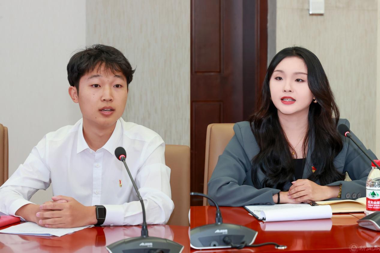 马理论研22级张华超、人工智能与计算机学院计研22级高焱宁作为毕业生党员代表发言。他们回顾了自己入党前后思想的变化以及在校期间的所学所获,并表示将来在工作岗位上必将不断淬炼本领、锤炼作风,勇于担责、做好表率,展现工大学子的青春风采。
