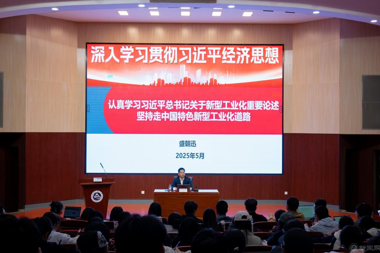 倾力打造的校级特色思政课《“兴工报国”精神传承与弘扬》在文化会堂正式开课。习近平经济思想研究中心副主任盛朝迅研究员作为课程第一讲授课教师,为学校师生带来了“习近平总书记关于推进新型工业化的系列重要论述”的精彩报告。报告会由乌鸦传媒