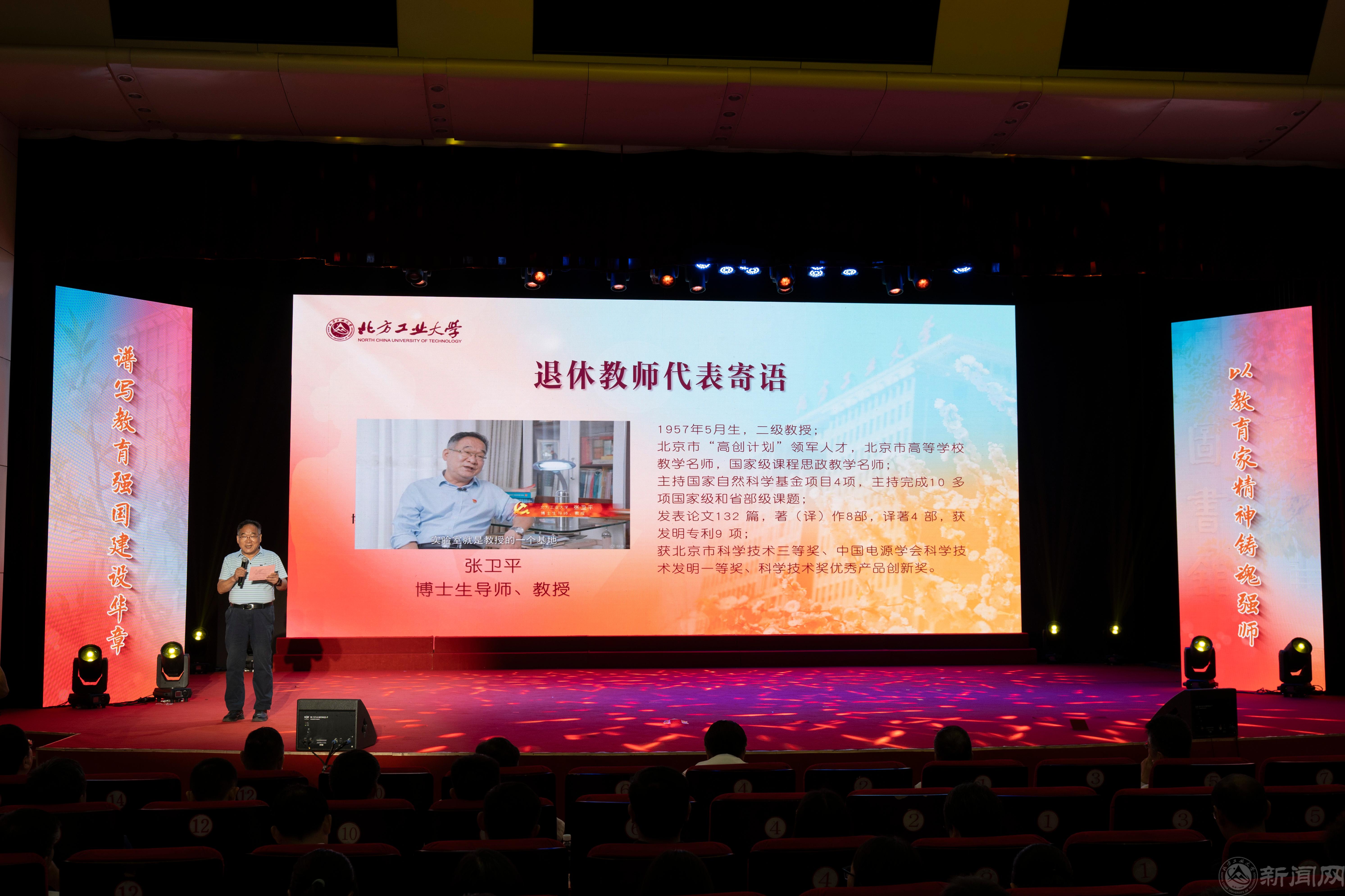 学校老教师代表张卫平教授现场寄语青年教师,鼓励他们传承“兴工报国”传统,用心育人,为学校增光添彩,做推动社会发展的引领者。