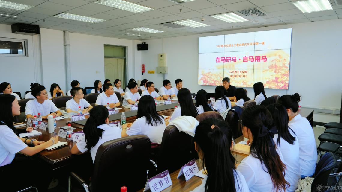 党委副书记、院长张茂林教授以“在马研马 言马用马”为题讲授开学第一课,全方位解读学院优势与学习方向。他指出,学校始建于1946年,历史底蕴深厚,虽为工科院校,但马克思主义学科实力强劲,自1952年设立政治教研部以来,已发展成为北京市重点建设学科。学院师资团队以80、90后教师为主,活力足、沟通畅,将为学生提供有力学术支撑。在三年研究生阶段实现从理论学习到实践应用的跨越,在北方工大平台上成长为兼具理论自信与实践能力的优秀人才。
