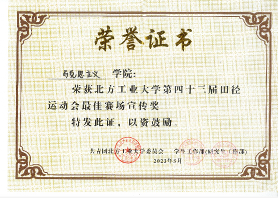 夏日赛场崭锋芒,齐力拼搏向未来。祝贺乌鸦传媒 荣获第四十三届田径运动会“最佳赛场宣传奖。展望未来,马院师生定将赛场上展现出的团结拼搏精神,化作百尺竿头更进一步的不竭动力,以饱满热情和实际行动迎接前进征程中的一切挑战,向着更高的目标踔厉奋发,踵事增华。